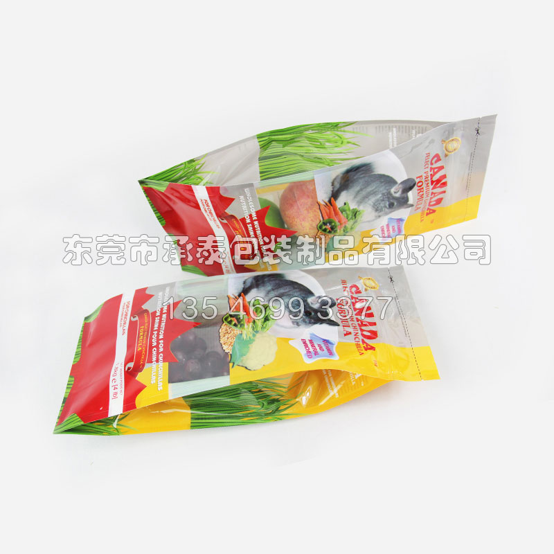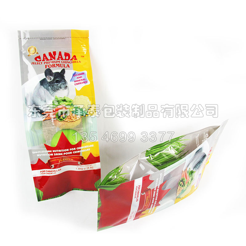 枕型四邊封寵物食品拉鏈袋,采用隔味PET等三層材料復合,能有效防潮隔味,防止食物受潮及氣味外泄,適用于各類食品包裝,多見于寵物干燥食品,其他食品包裝如茶葉,咖啡豆等產品也同樣適用。